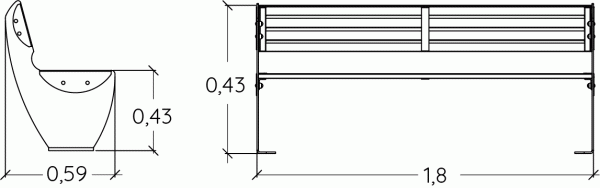 Banco com costas, em aço e poliéster, com 1,8m de comprimento e assento com 0,43m de altura. Ideal para parques infantis, juvenis, jardins, escolas, entre outros. Para fixação de superfície.
