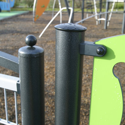 Poste em aço galvanizado para vedações G2876, G2877 ou G2879 da Proludic. Ideal para espaços de jogo e recreio. Para fixação a sapatas de betão.