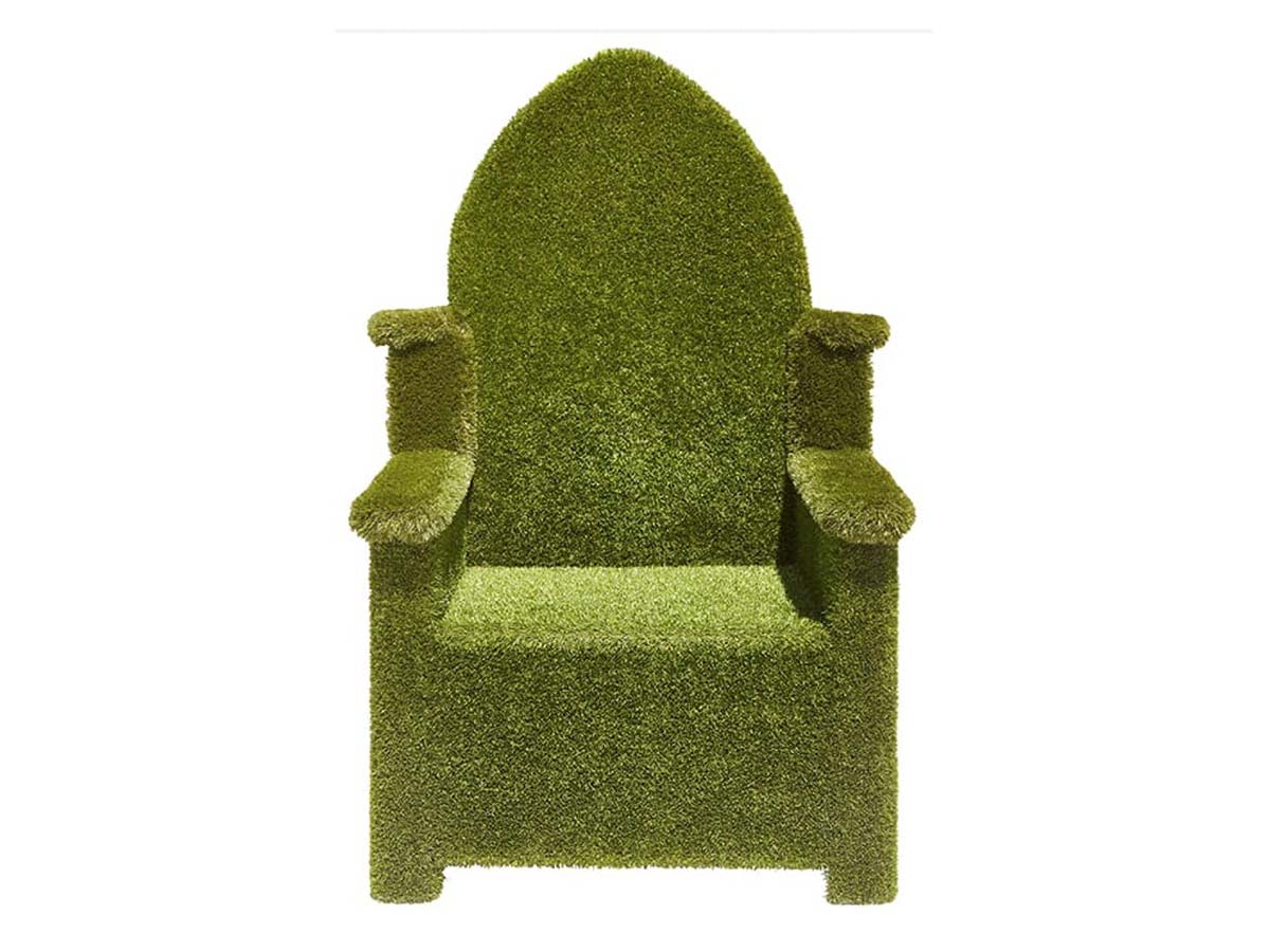 Trono com estrutura interna em GRP e revestimento integral em relva sintética especializada Easigrass na cor verde. Acabamento perfeito e sem juntas. Pode ser usado tanto em espaços interiores como exteriores, exposto a todo o tipo de condições atmosféricas. Muito robusto e durável. Ideal para explorar as texturas e estímulo sensorial, para sentar, brincar, sociabilizar e como elemento decorativo.